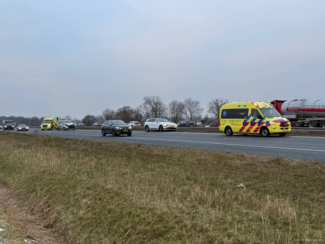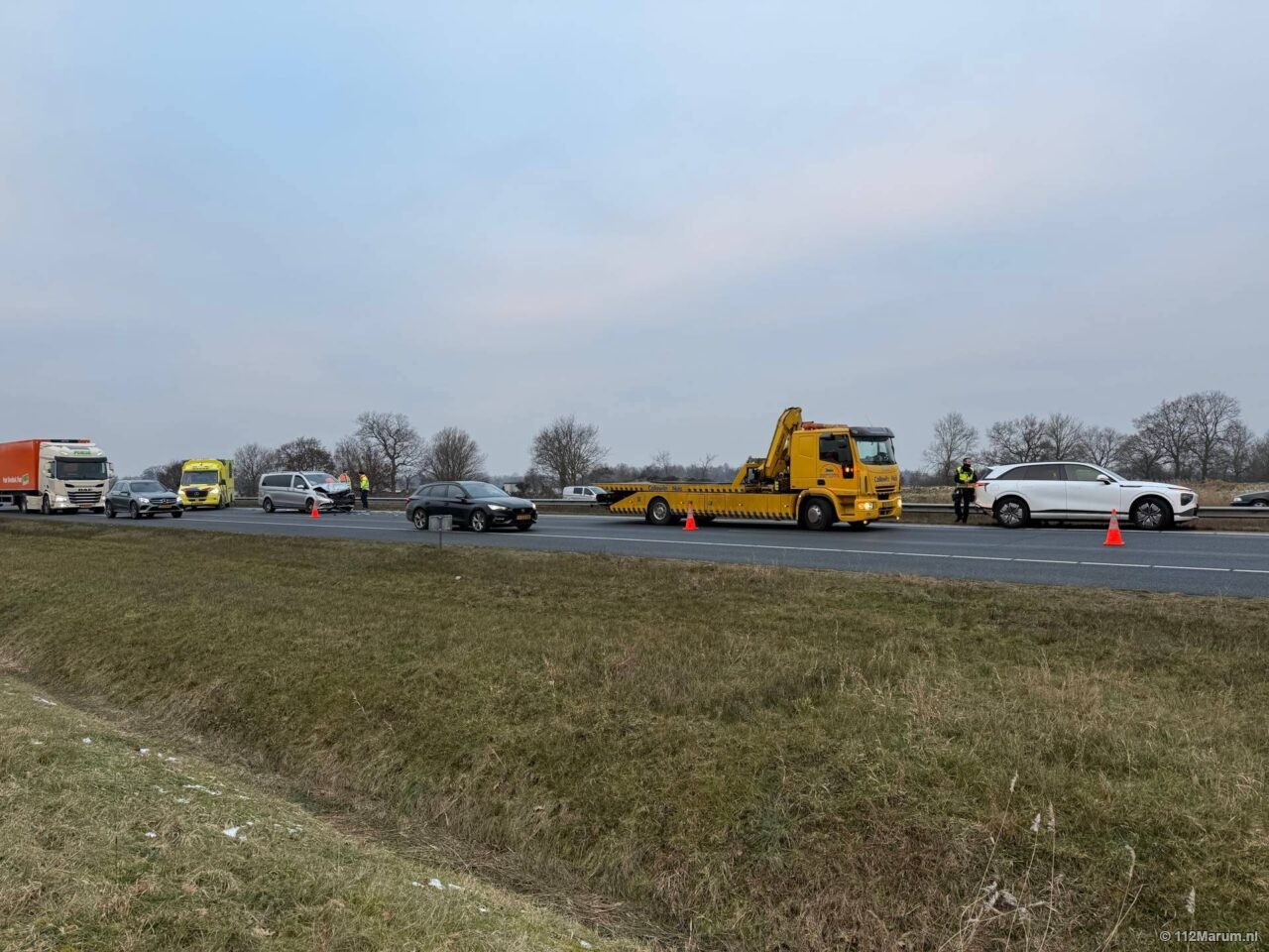 In de file botse door onbekende oorzaak een taxibusje achterop een auto. De betrokkenen zijn gecontroleerd door ambulancepersoneel. Of er iemand naar een ziekenhuis is overgebracht, is niet bekend. Het verkeer op de A7 had veel last van het ongeval. Er stond een lange file van ong. 5 km. in de richting van Groningen.