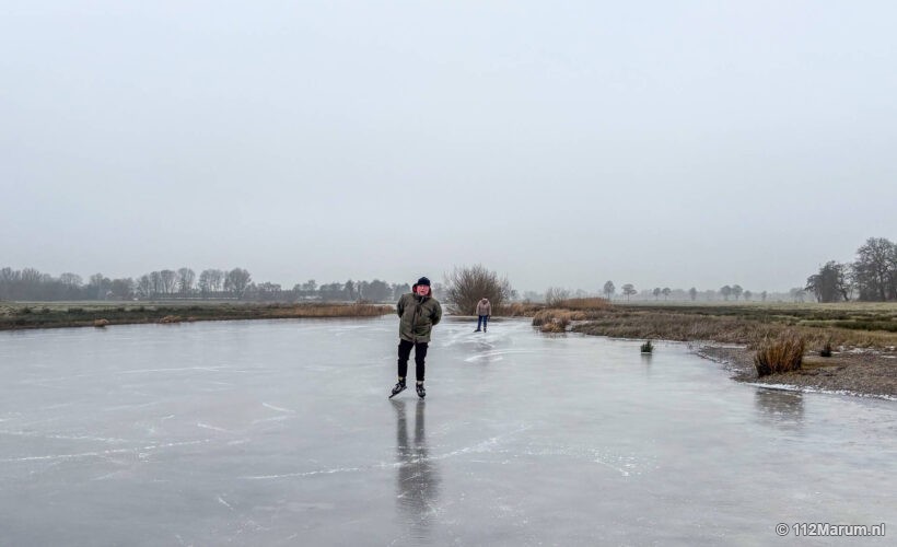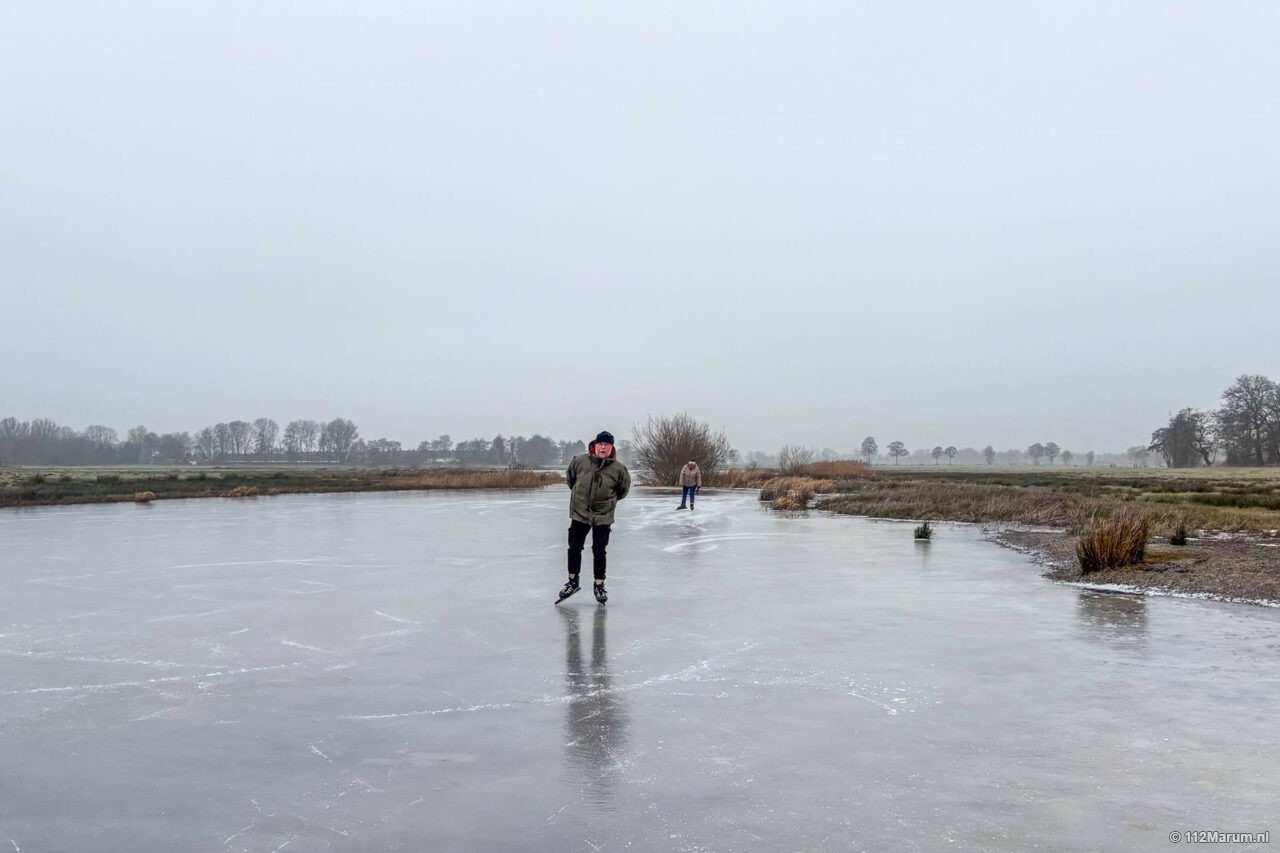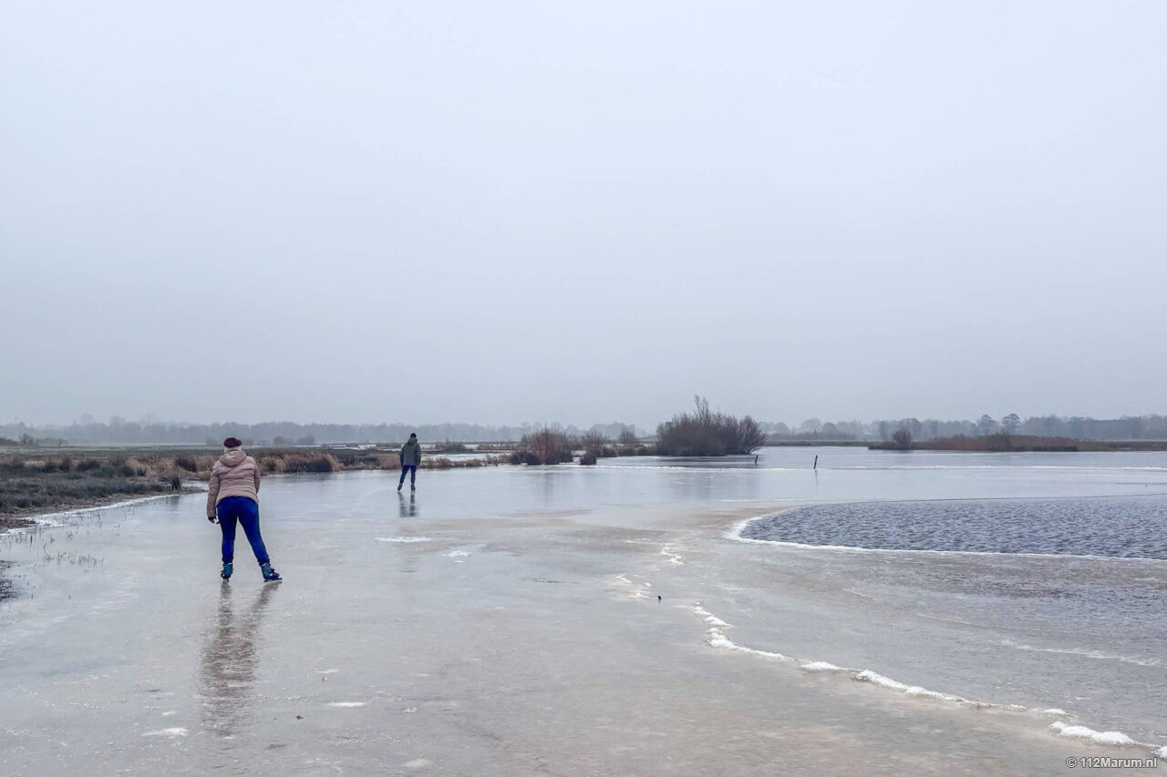 Op de Marumerlage werd voorlopig voor de laatste keer geschaatst. Na een paar mooie vriesdagen kom er vandaag vandaag nog voorzichtig geschaatst worden.