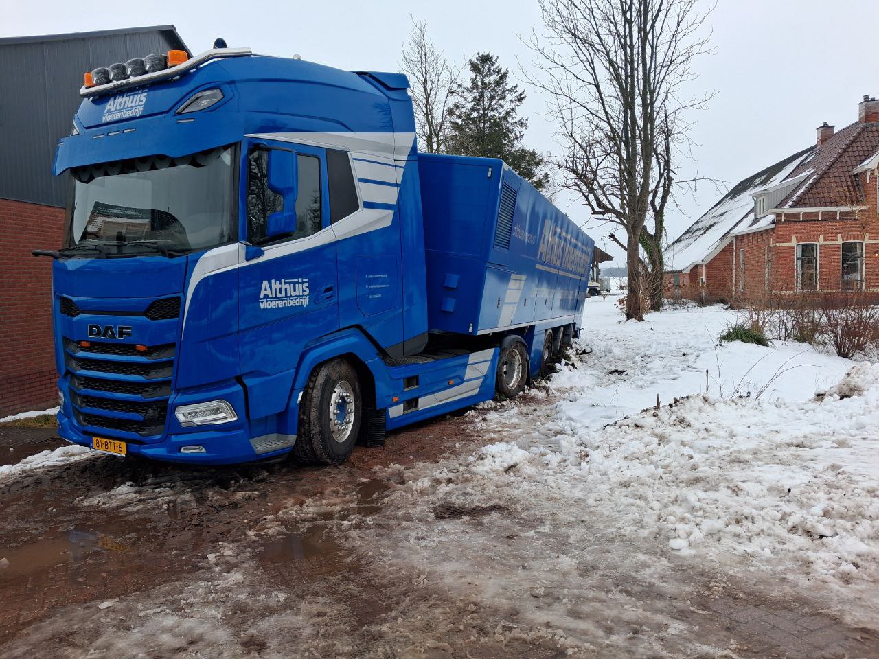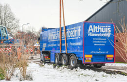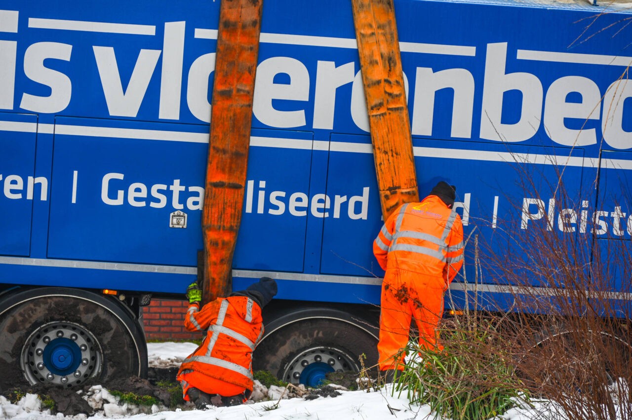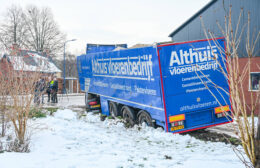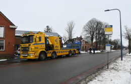 Een vrachtwagen geladen met zgn. “gestabiliseerd zand” heeft vandaag enkele uren vastgezeten op een oprit naar een boerderij aan de Molenweg in Niebert.