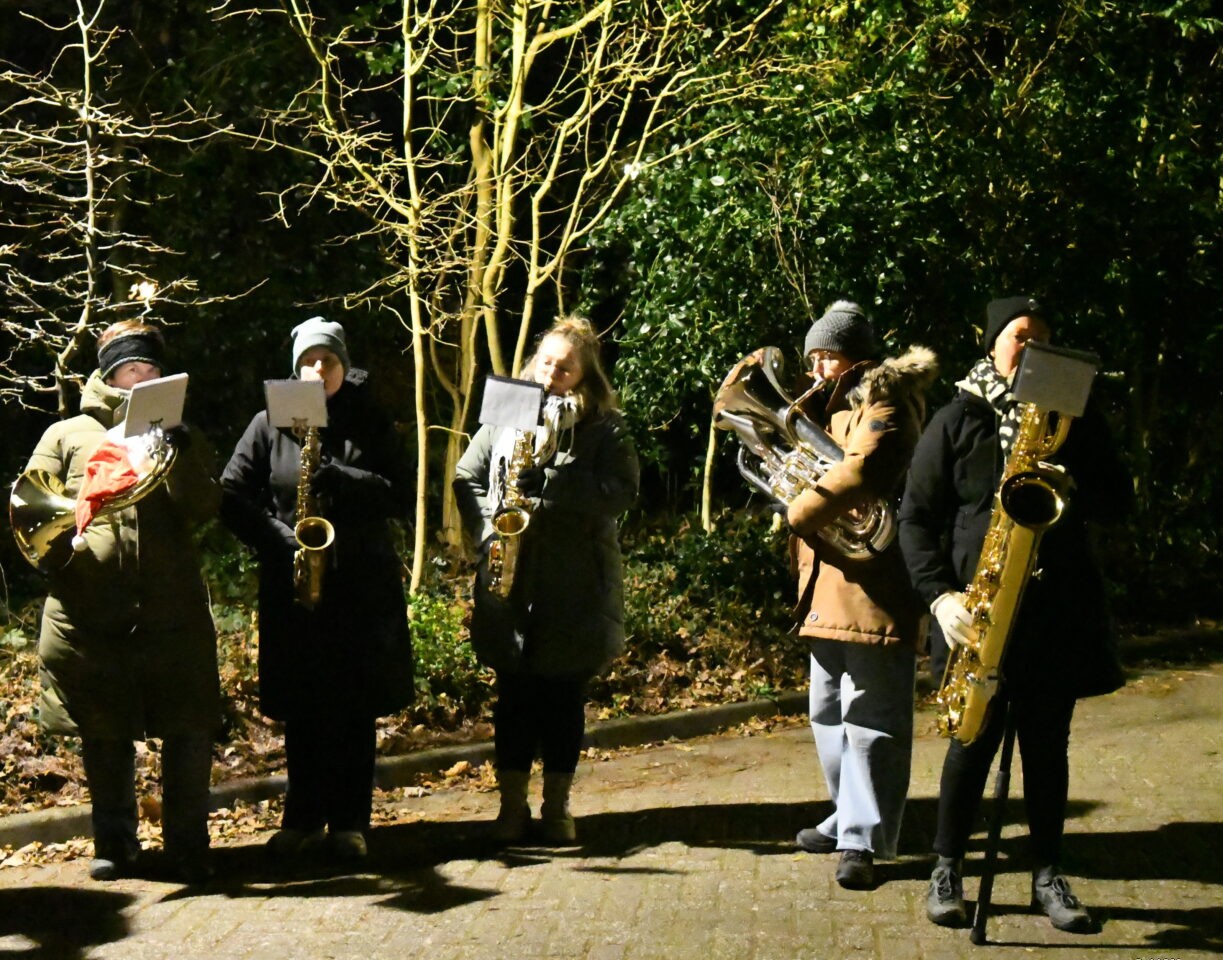 Na deze korte pauze werden de kerstklanken vervolgd op de hoek van de Suwemaheerd en de Van Ewsumstraat. De muzikale ochtend werd afgesloten bij De Hoorn, waar nog eenmaal feestelijke melodieën door de omgeving klonken.