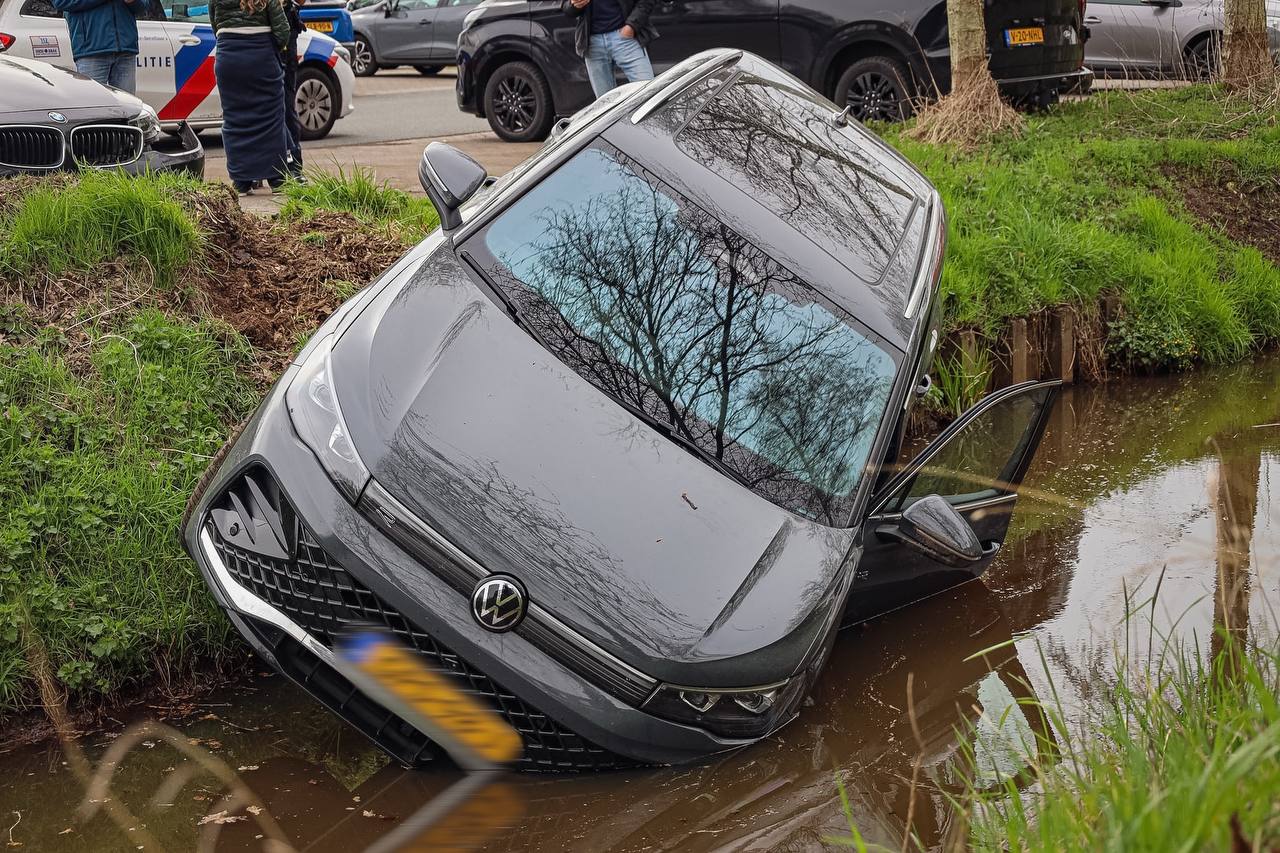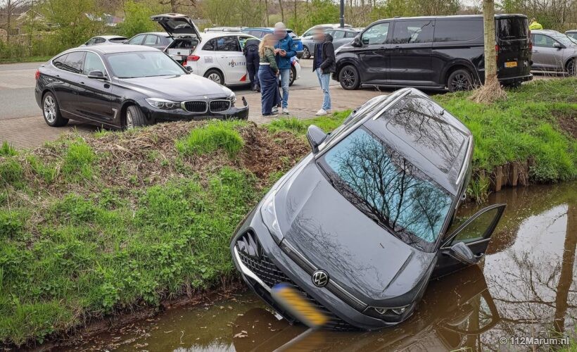 Voor zover bekend konden de inzittende(n) ongedeerd de auto verlaten. Bergingsbedrijf Collewijn heeft de auto die licht beschadigd raakte, weer op het droge gezet.